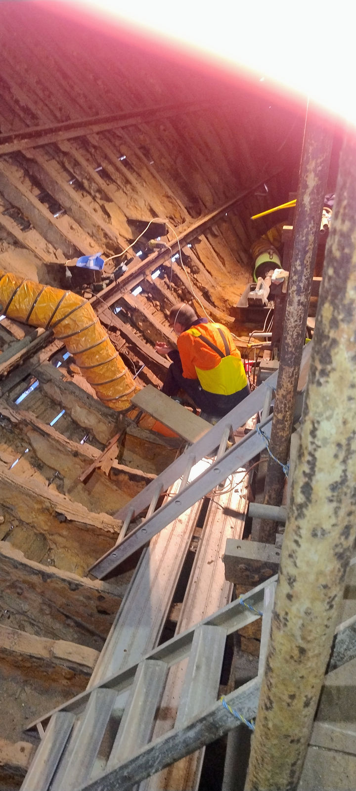 Major structural work is underway, The iron frame at the stern near the keelson is being repaired and reinforced in preparation for fitting the lower 18m section of the mizzen mast.